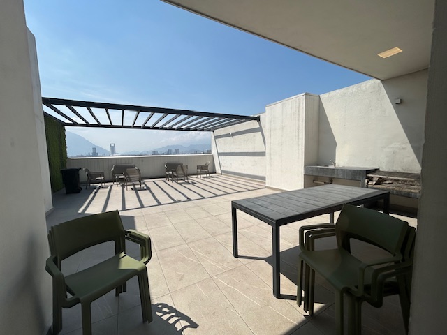 Precioso Departamento ideal para inversionista ya que cuenta con contrato de arrendamiento en privada con acceso controlado y vigilancia 24/7hrs. Totalmente amueblado y equipado. Recibidor, sala, comedor, cocina integral cubierta de cuarzo con barra, estufa, campana, microondas y refrigerador; tres recámaras: la principal con baño vestidor, las secundarias cada una con closet y comparten baño; todas cuentan con minisplit y persianas, lavandería con lavadora, secadora, tallador y boiler. Cuenta con área de terraza y 2 cajones de estacionamiento en batería. Área común de alberca, terraza con mesas, asadores, juegos infantiles, salón de eventos y gimnasio. Parque exterior con lago artificial. Cerca de avenidas principales, centros comerciales y empresas. Informes: 81 1579 8003 / 81 1183 8914 norals3@hotmail.com